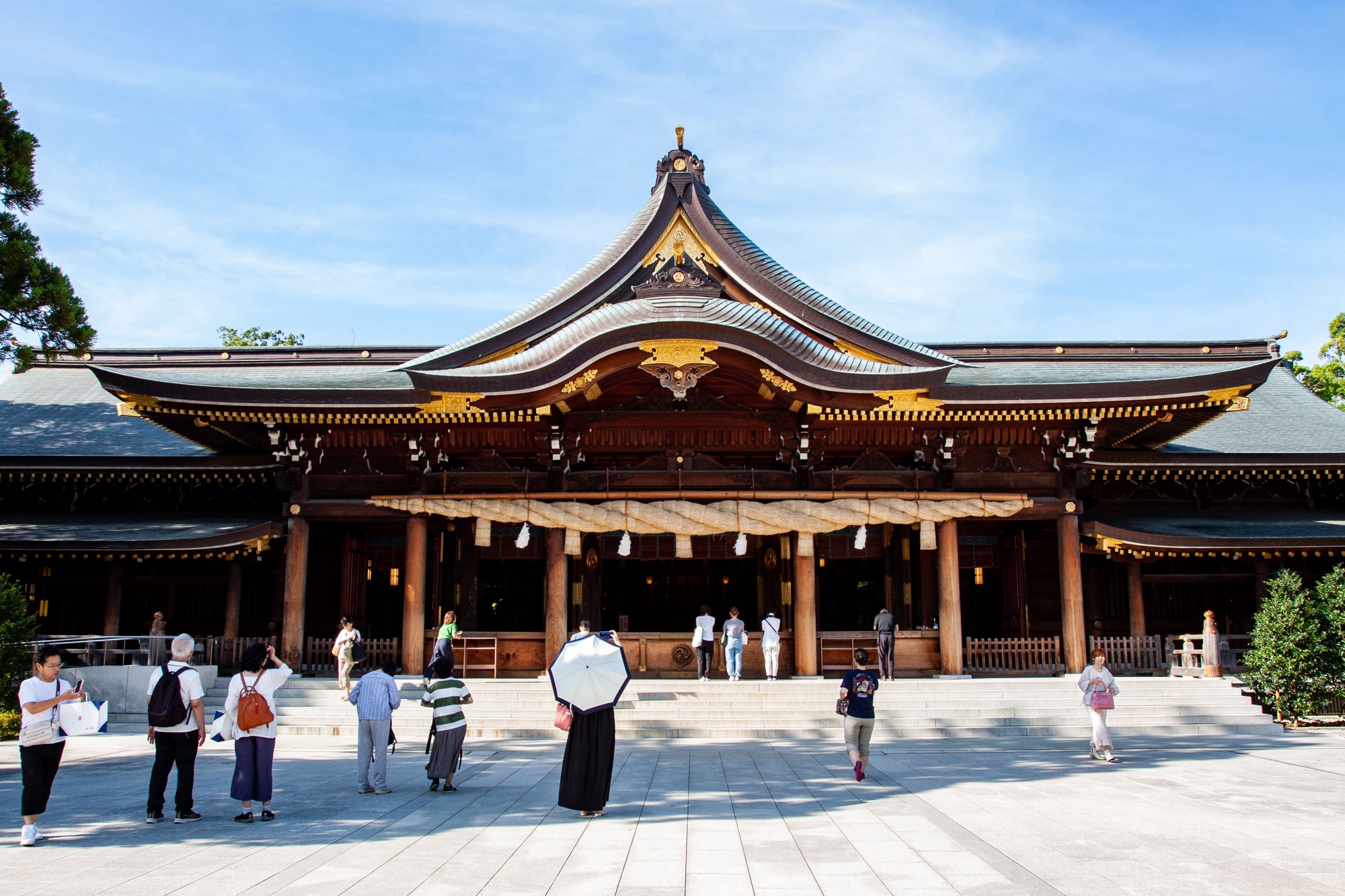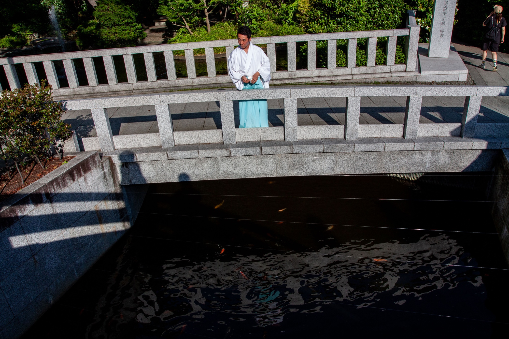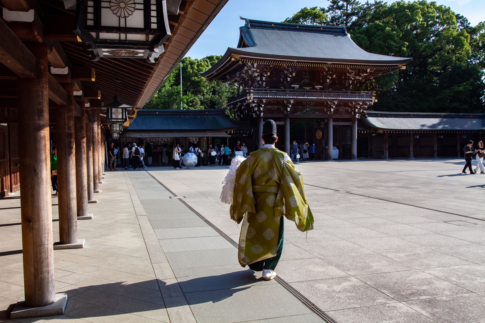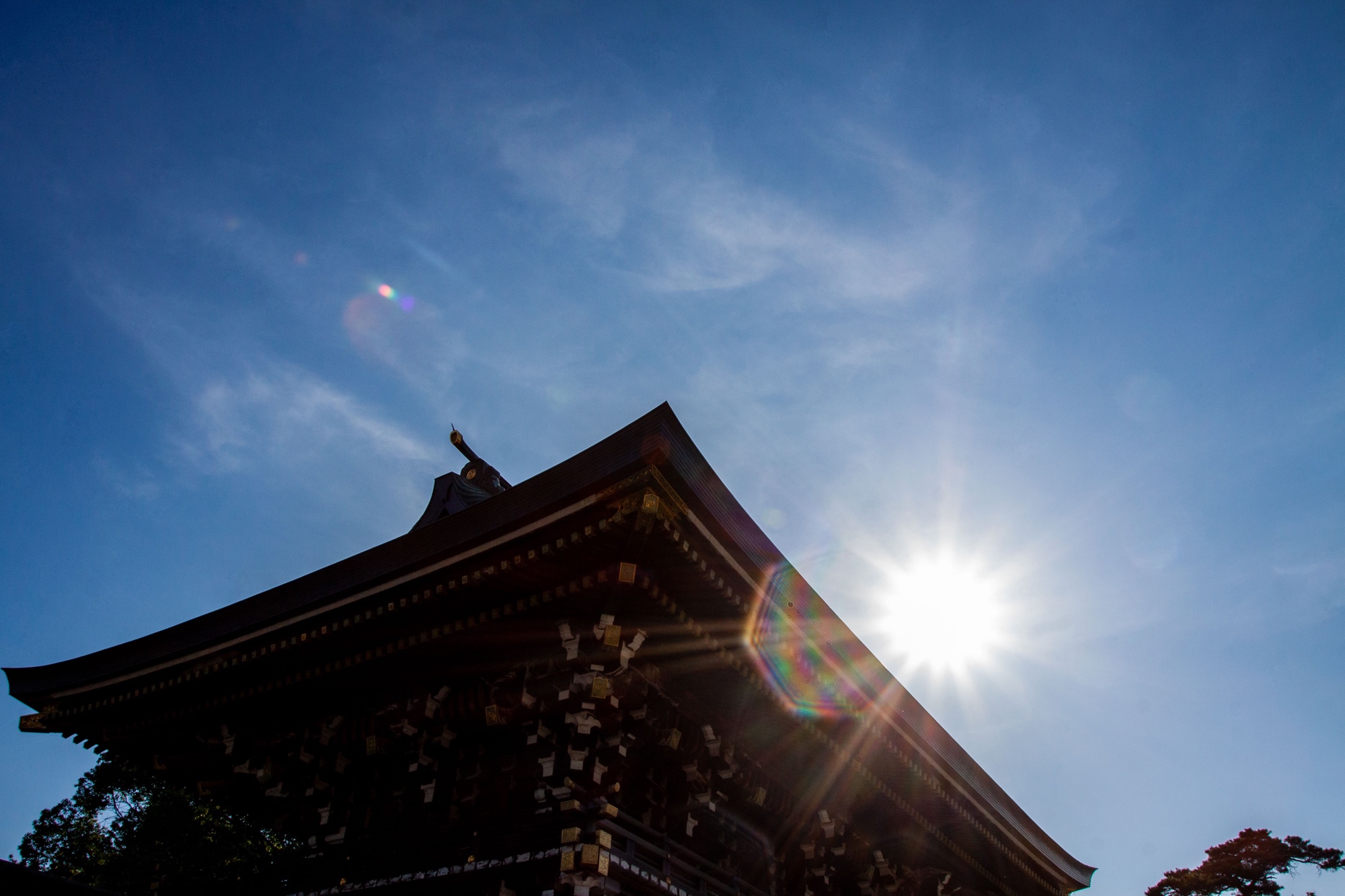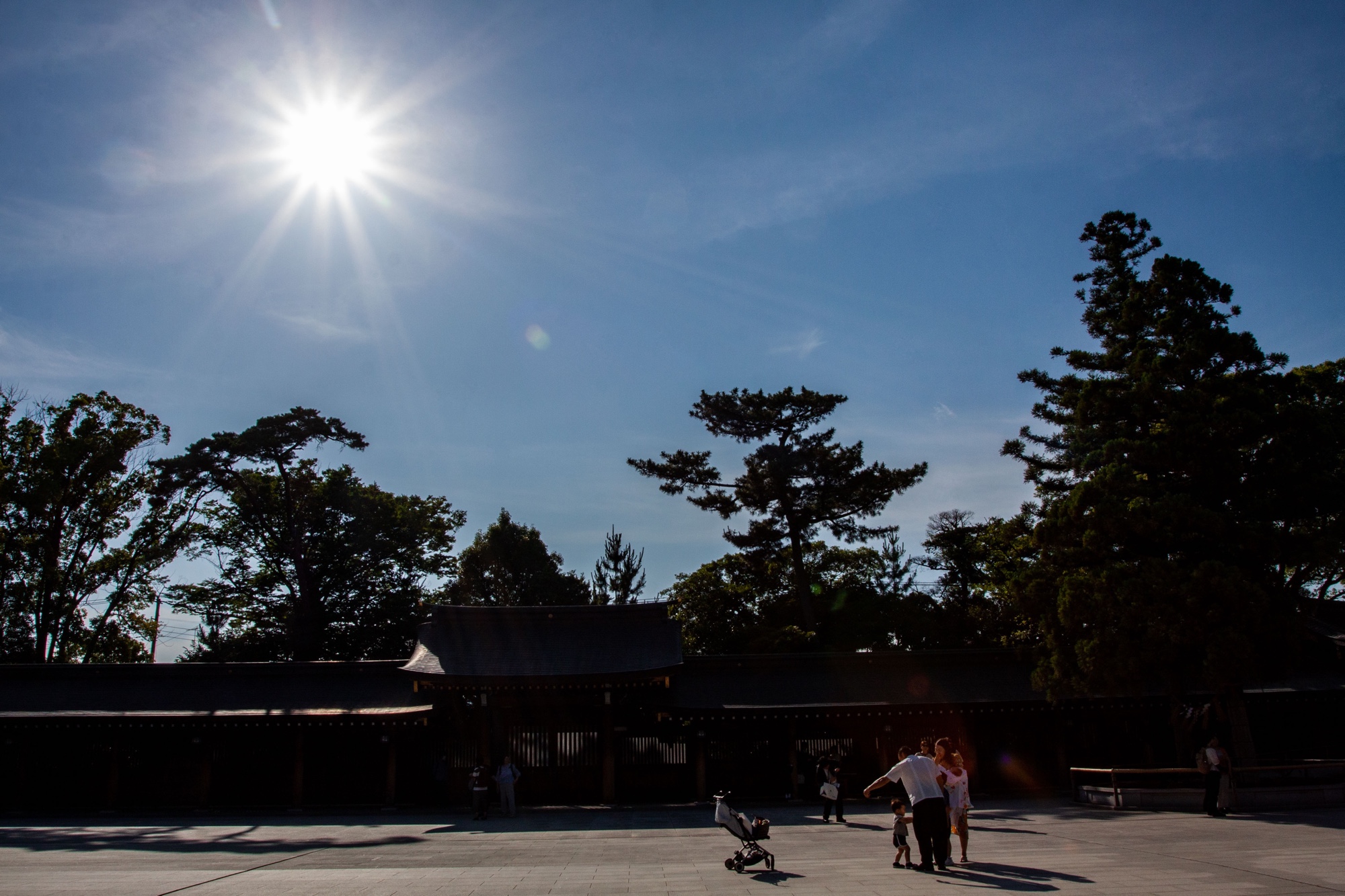 Nous sommes retournés au sanctuaire de Samukawa (寒川神社) dans la préfecture de Kangawa le jour de l’anniversaire symbolique du Soleil, correspondant au solstice d’été. Ces photographies datent donc du 21 juin 2025 et j’ai essayé de prendre le Soleil en photo à plusieurs occasions car c’est le jour où il brille le plus longtemps. Il a pris différentes formes à travers mon objectif photo dont une forme octogonale, qui m’a paru être de bon augure. Notre première visite au sanctuaire de Samukawa date du début de cette année. Nous voulions cette fois-ci visiter le jardin à l’arrière que nous avions manqué la première fois. Nous avons appris sur place que l’entrée dans ce jardin sacré n’est autorisé qu’à ceux ayant effectué un rituel de purification shintoïste (お祓い) au préalable, ce que nous avons fait mais un peu tard, car les dernières entrées dans le jardin ne peuvent s’effectuer que jusqu’à 15h30. Nous avons tout de même reçu un billet nous permettant d’y accéder directement la prochaine fois, comme quoi cette purification shintoïste n’expire pas le jour même et semble s’étendre après plusieurs mois. Nous tenterons donc d’y revenir une troisième fois prochainement. Peut-être verrais-je cette fois encore les prince et princesses imaginaires qui m’avaient inspiré sur mon premier billet.