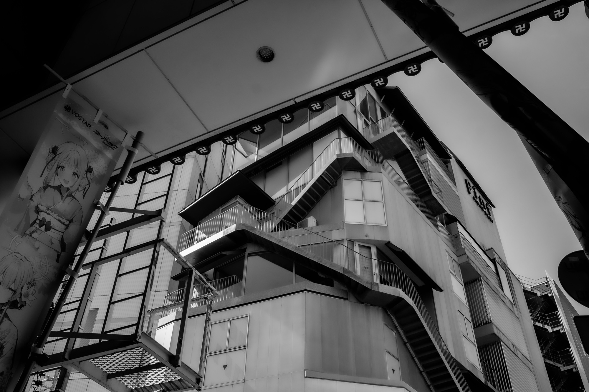Je reviens le long de la ligne Yamanote ce Samedi matin à la recherche de la porte Yama 13. La rue est déserte, ce qui est à priori une bonne chose. Il est pourtant aux alentours de 11h du matin. Les voitures circulent normalement, sporadiquement sur cette rue, ainsi que quelques étudiants de l’école de design proche. Je me trouve maintenant devant la porte. J’essaie discrètement de faire tourner la poignée. La porte ne semble pas être fermée à clef. Après avoir vérifié une dernière fois qu’il n’y avait personne autour de moi, j’ouvre la porte, entre à l’intérieur et referme la porte aussitôt derrière moi, sans trop réfléchir. Entre le talus de la voix ferrée et le grillage couvert de lierres, se trouve un petit chemin de terre qui file devant moi sur quelques mètres. Il donne sur une porte de métal placée sur le talus. Elle est légèrement oblique et fait tout juste ma taille. La porte est fermée par un mécanisme à code et je n’ai bien entendu pas le code d’entrée. On dirait que cette petite aventure s’arrête là, devant une porte métallique fermée par un code que je ne connais pas. Alors que je m’apprêtais à rebrousser chemin, il me vient en tête de consulter une nouvelle fois la carte de visite que l’on m’avait donné. Je pourrais peut-être y déceler un indice. Je la sors de ma poche et constate les seules écritures que je connaissais déjà. Rien ne le laisse imaginer un possible code d’entrée. Mais en observant maintenant cette carte à la lumière du soleil, je remarque une impression légèrement réfléchissante lorsqu’on l’oriente correctement. Oui, sous le nom Yama 13, je distingue maintenant deux chiffres, le 30 et le 24, qui sont écrit séparés par deux points comme pour exprimer une durée (30:24). Si c’était la durée d’un morceau de musique, il serait particulièrement long. C’est la première réflexion qui me vient en tête car j’écoutais justement en venant jusqu’ici un très long morceau instrumental de Ryuichi Sakamoto intitulé Aromascape sur l’album Cure de Miki Nakatani. Ce long morceau plein de mystère et de mélancolie dure également 30 minutes et 24 secondes. J’y vois là une coïncidence qui me pousse à aller plus en avant. Le code fonctionne sur le mécanisme manuel d’ouverture de la porte. Après un cliquetis métallique, la porte se déverrouille et la poignée ronde permet maintenant d’ouvrir la porte. Je l’ouvre doucement pour éviter tout bruit. Cette porte donne sur un couloir étroit aux murs lisses peints en noir avec un plafond arrondi. Deux rayons d’une lumière froide accompagnent les rampes latérales d’un escalier descendant sous la voix ferrée. A première vue, il doit bien faire une cinquantaine de marches de long. Ce n’est plus le moment d’avoir des doutes. Je laisse la porte entrouverte pour me donner un peu plus de lumière et pour me dire que je pourrais remonter les marches et sortir en urgence si la situation le demandait. J’entame la descente de l’escalier d’un pas lent et le plus discrètement possible. Au fur et à mesure que je descends les marches, je perçois un léger son de piano provenant du bas. Je n’arrive d’abord pas à le reconnaître mais il me paraît de plus en plus clair à chaque marche descendue. Je reconnais le morceau instrumental que j’écoutais justement en venant jusqu’ici, ce qui me rassure d’une certaine manière.