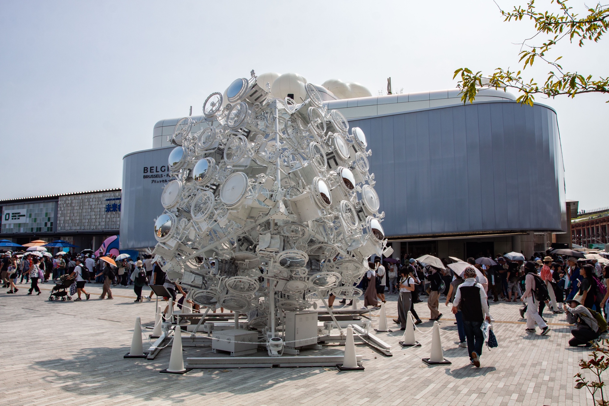 Installation type_ark_spec2 de la série HIWADROME de l’artiste Kazuhio Hiwa, devant le Pavillon de la Belgique.