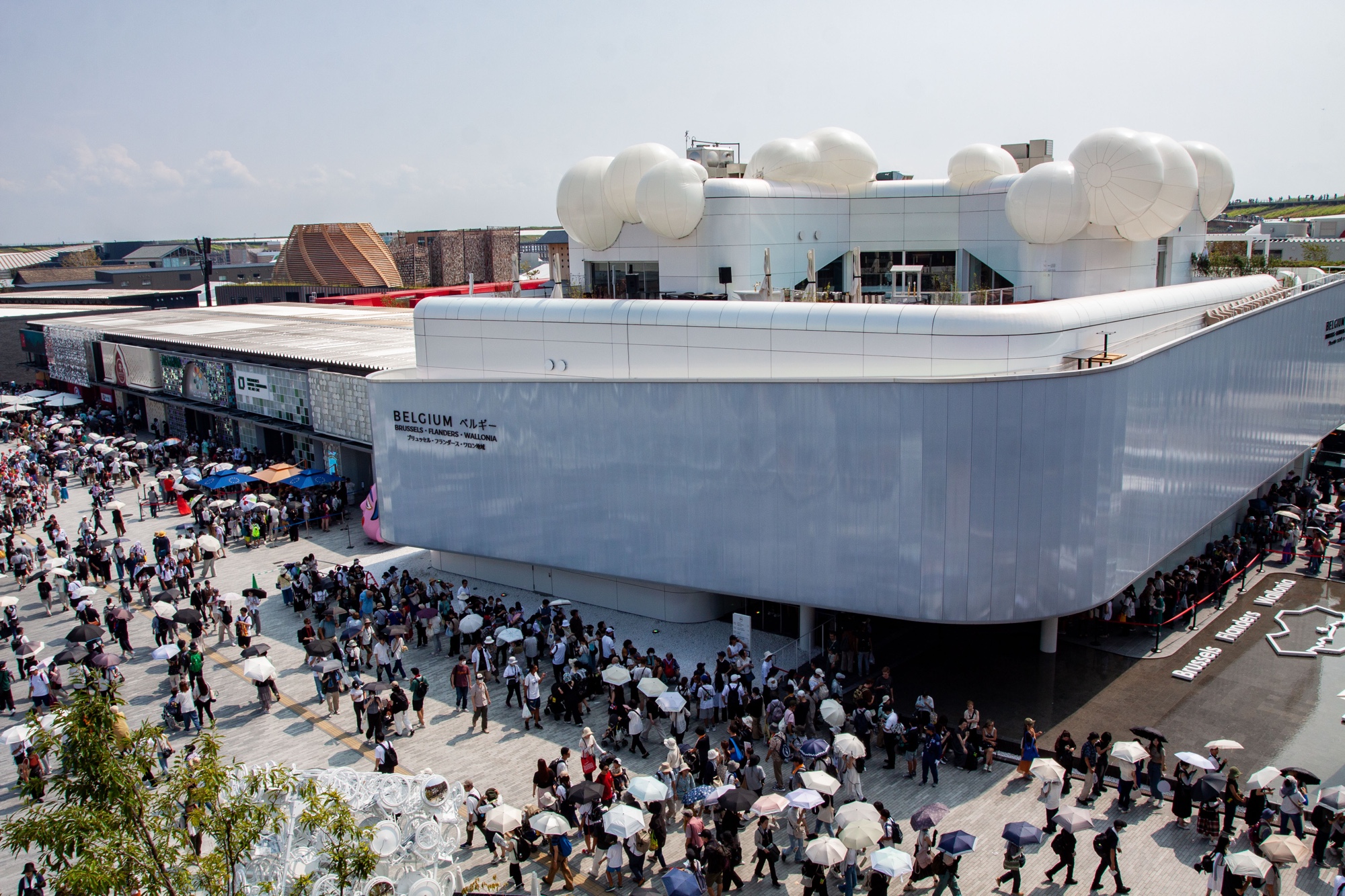 Vue depuis l’Anneau sur le Pavillon de la Belgique conçu par Carré 7.