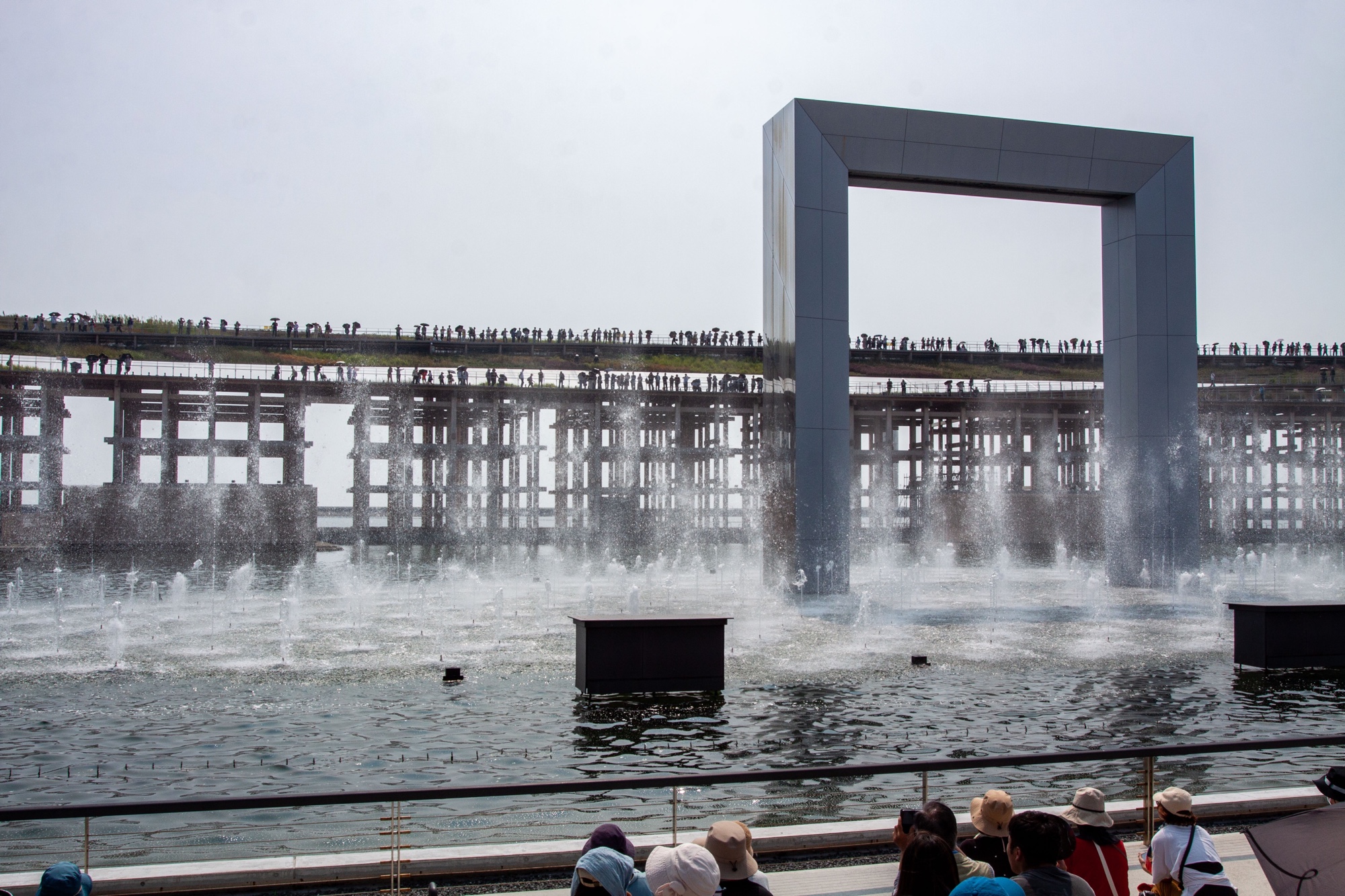Vue sur la Water Plaza entourée par le Grand Anneau.