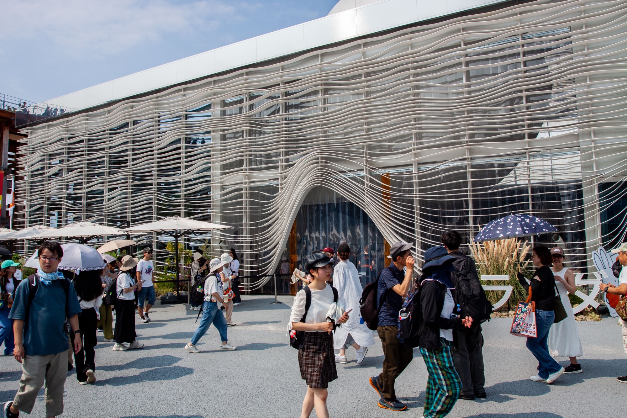 De nombreux architectes reconnus ont participé à la conception des pavillons. Outre Sou Fujimoto, on retrouve des grands noms de l’architecture japonaise comme Toyo Ito, Kengo Kuma, Akihisa Hirata, SANAA, Yuko Nagayama, Shin Takamatsu, Shigeru Ban, entre autres. Je commence ici une série de plusieurs billets montrant tous ces édifices, en m’efforçant de commenter chaque photographie. La multitude d’images que j’inclus dans chaque billet vient illustrer la densité de l’Expo 2025 d’Osaka.
