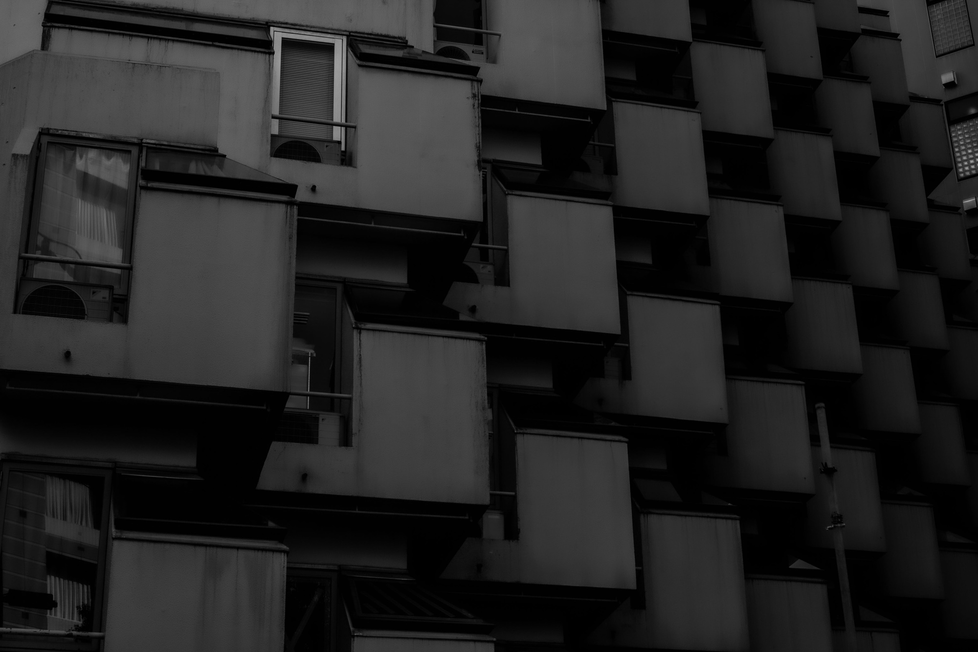 Je m’aperçois parfois après coup des liens entre les photographies que je prends et que je réunis dans un même billet. Je les associe dans un billet car je ressens une unité qui peut être visuelle, spatiale ou temporelle. Ici, c’est une répétition de motifs rectangulaires qui attire mon regard photographique. Ces motifs urbains proviennent des alentours de l’Université de Waseda pour les deux premières photographies et d’Aoyama pour les deux suivantes. À Waseda, j’ai effectué ma visite annuelle du sanctuaire Ana Hachimangu (穴八幡宮) que je fais en général dans les derniers jours de l’année. La grippe de fin Décembre m’a contraint à la repousser au mois de Janvier. Je me décide ensuite à rentrer à pieds jusqu’à Shinjuku en essayant de suivre une route que je ne connais pas qui traverse en partie le parc de Toyama et longe des barres d’immeubles blanchâtres numérotés. L’architecture des deux dernières photographies a déjà été montrée sur ces pages. Il s’agit d’abord de la Villa Moderna (ビラ・モデルナ) conçue par Junzo Sakakura (坂倉準三) en 1974, puis du SIA Aoyama Building conçu par Jun Aoki (青木淳) en 2008. La Villa Moderna, comme celle nommée Bianca, survit aux années qui passent. La Villa Bianca conçue par Eiji Hotta est par contre plus ancienne, datant de 1964 et est inscrite au registre de préservation architecturale Docomomo Japan, tout comme la Villa CouCou de Takamasa Yoshizaka. La Villa CouCou est visitable sur réservation certains jours seulement. J’ai très envie de la visiter mais les réservations sont malheureusement difficiles. La Villa CouCou est la propriété de l’actrice Kyōka Suzuki (鈴木京香) et je l’ai vu plusieurs fois présentée à la télévision ces derniers temps.